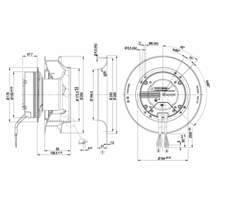 Центробежный вентилятор ebmpapst R3G250RO40A5
