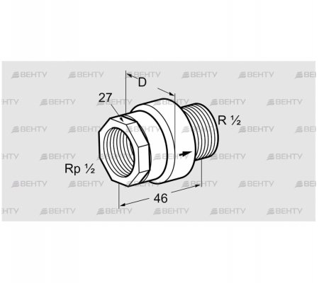 • Тип соединения: Внутренняя резьба Rp. Внешняя резьба R