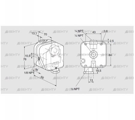 Диапазон настройки: 1-20 дюймов WC (2,5-50 мбар).