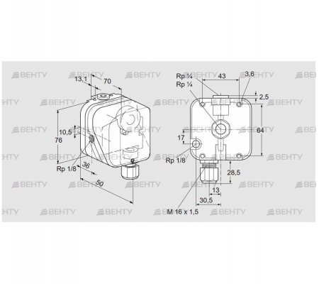Переключатели с повышением положительного давления (газ/воздух), отрицательного давления (воздух), перепада давления (воздух-воздух).