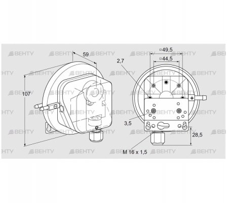Диапазон настройки: 0,2–3 мбар, может использоваться как "реле давления специальной конструкции".