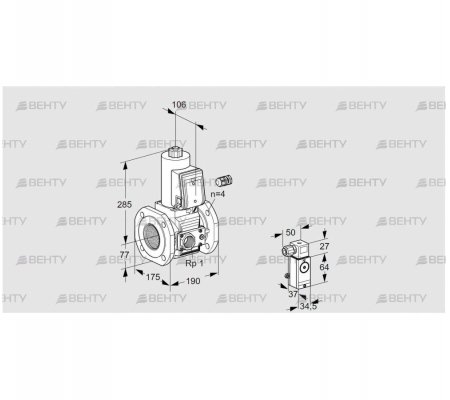 Принадлежности, левый выход: Реле давления Kromschroder DG 110VC.