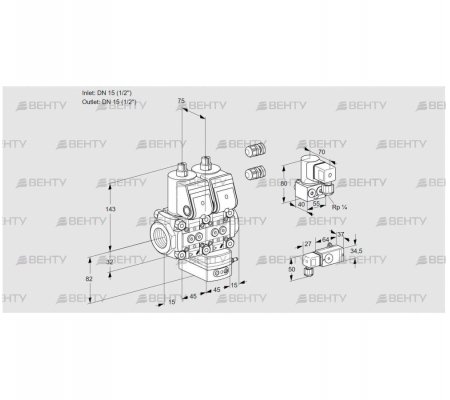 VCV1E15R/15R05NVKWR3/2--4/PPZY (88105603) Клапан с регулятором соотношения Kromschroder 88105603, купить в Москве в наличии на складе.