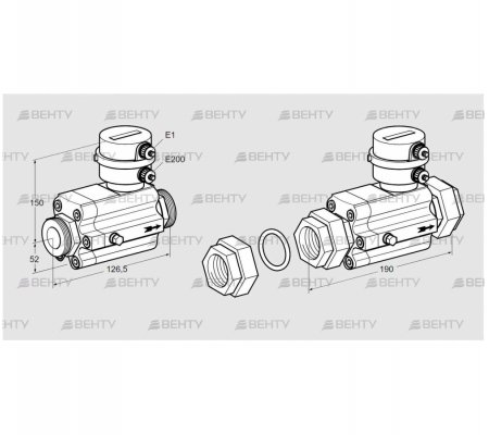 DN 40, E1: 0,1 импульса/фут³, E200: 25 импульсов/фут³.