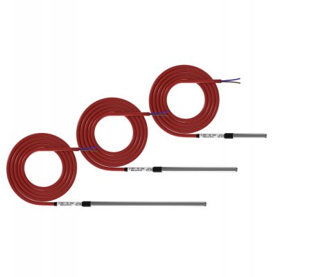 TU-02 (PTC): Датчик температуры в изолированной гильзе длиной 50 мм. Применяется для измерения температуры как накладной (контактный) датчик трубопроводов, теплых полов и прочих поверхностей.