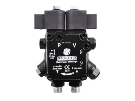 Дизельный шестеренчатый насос SUNTEC AT2 75 C 9583 2P 0500 характеризуется двумя режимами давления. Имеет отсечной электромагнитный клапан с функцией запирания. Переключение между низким и высоким давлением обеспечивается вторым встроенным электромагнитным клапаном.